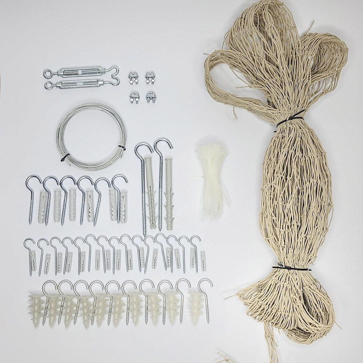 Zestaw montażowy siatki na balkon o wymiarze 3×3 metry zawiera: