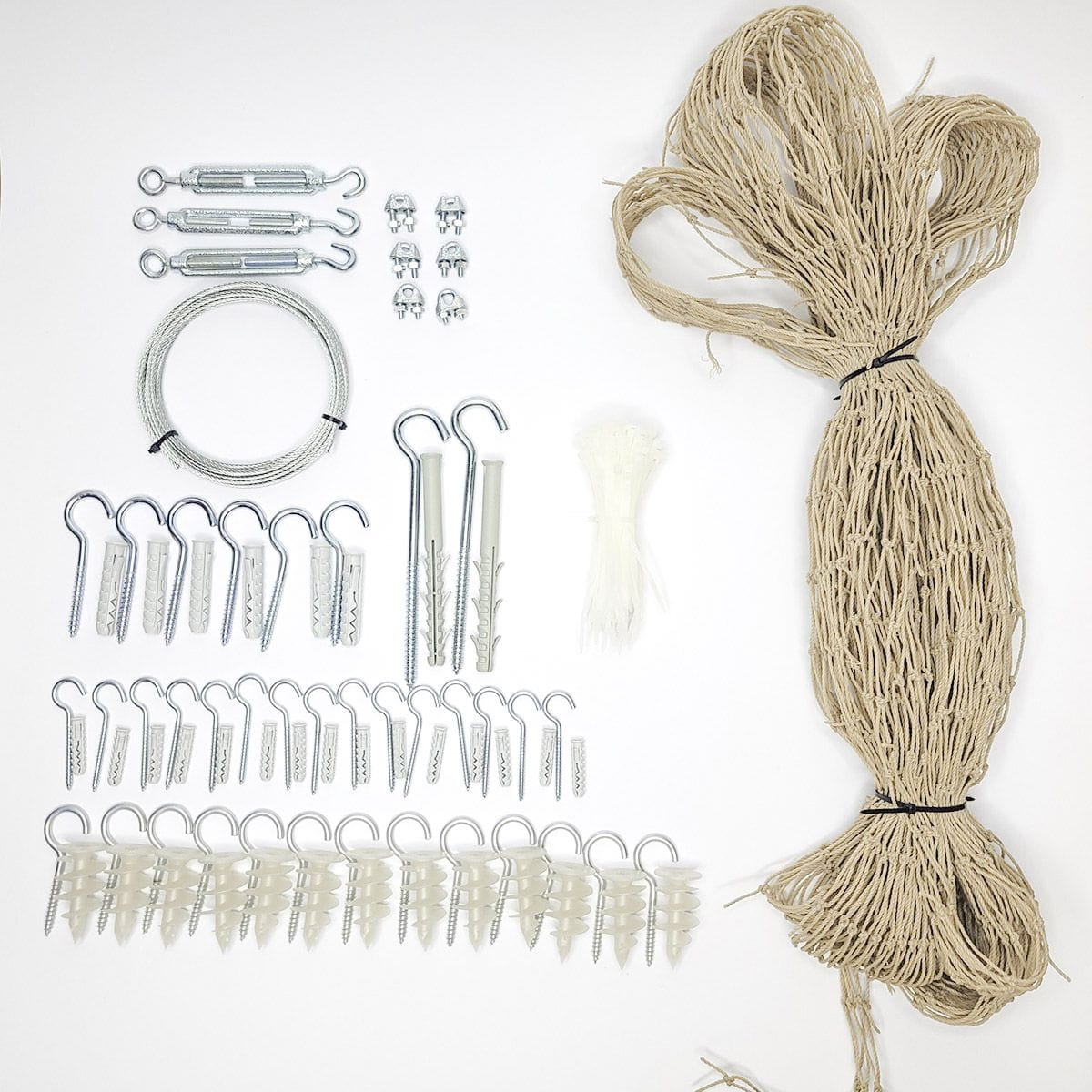 Zestaw montażowy siatki na balkon zawiera wszystkie niezbędne elementy, które ułatwiają proces instalacji. Wśród akcesoriów znajdują się: