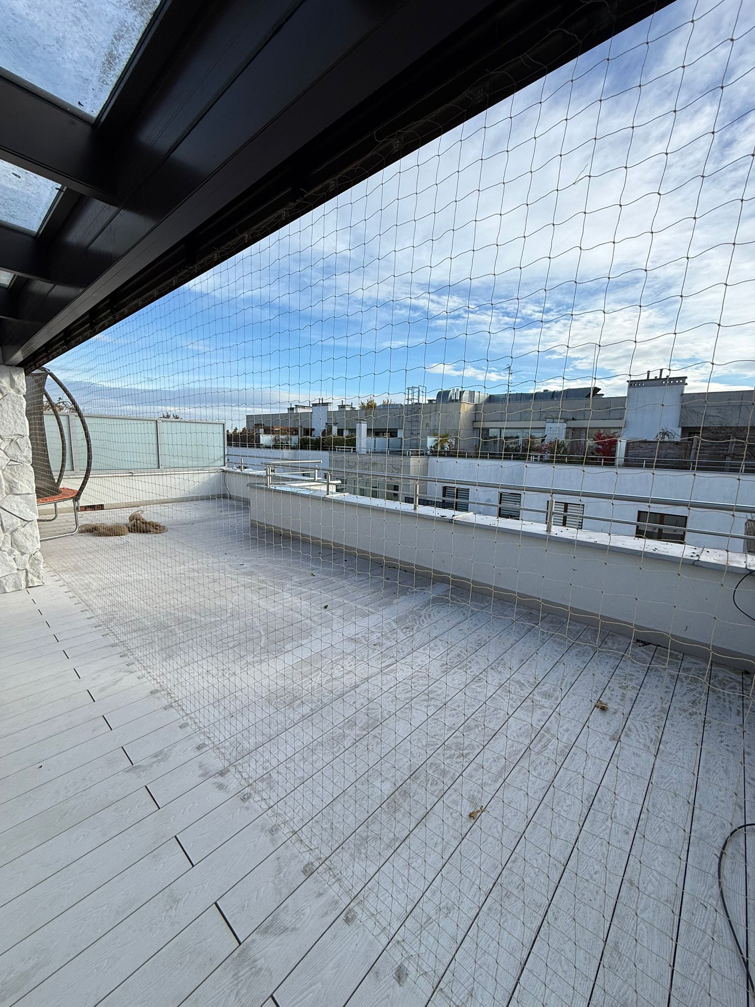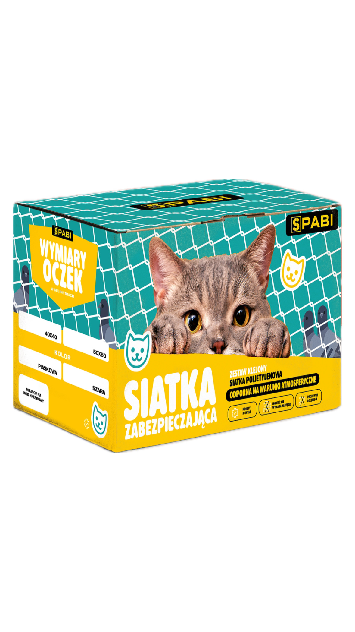 Kompletny zestaw montażowy metodą bezinwazyjną/ klejoną – umożliwia w prosty sposób samodzielnie zabezpieczyć balkon, okno, taras lub inną przestrzeń przed wypadnięciem kota lub przed wlatywaniem niechcianych ptaków.